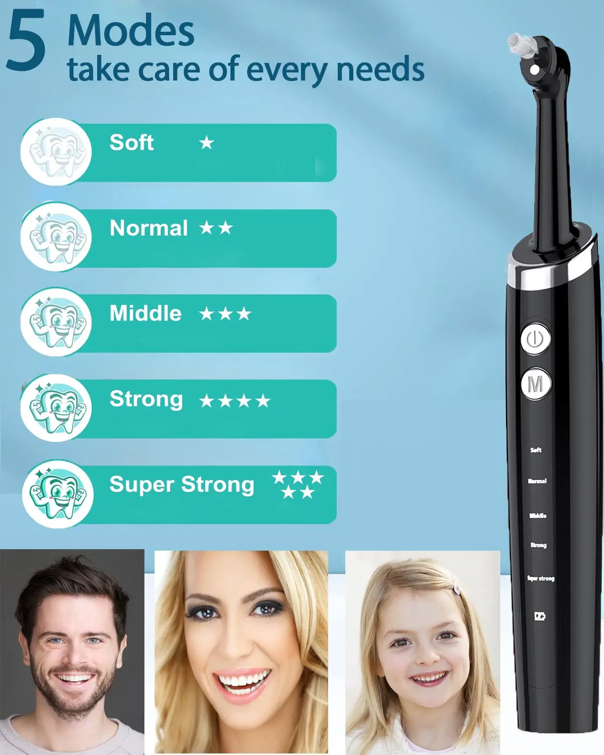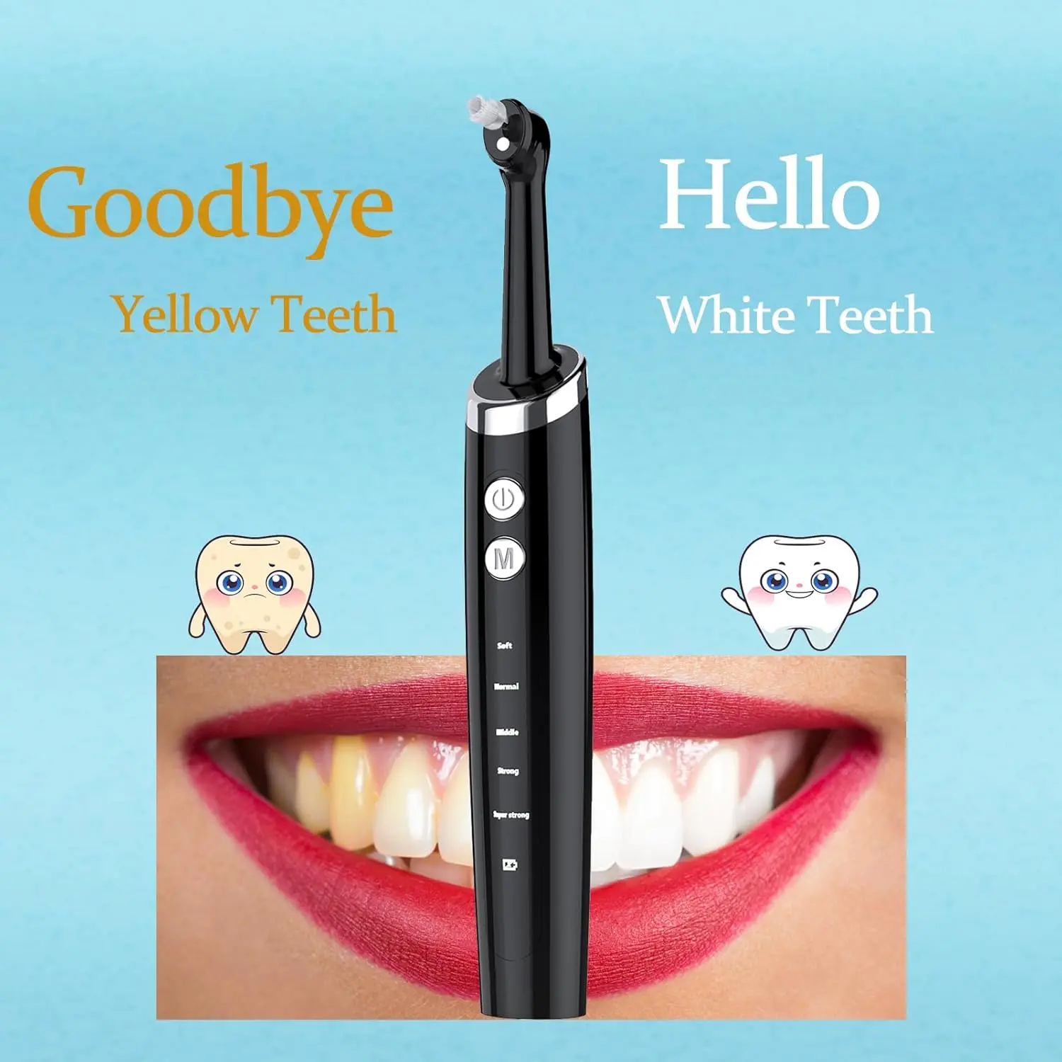 Achieve a brighter, healthier smile with the ZoCCee Tooth Polisher. This innovative device effectively removes plaque and stubborn stains caused by coffee, tea, wine, cigarettes, and more, restoring your teeth to their natural brilliance. Suitable for both adults and children, the ZoCCee tooth polisher provides a cost-effective solution for maintaining professional-level dental care at home. Equipped with five adjustable modes ranging from soft to super strong, this electric tooth buffer caters to varying gum sensitivities and individual cleaning needs. The included LED light illuminates hard-to-see areas, ensuring thorough and precise cleaning. The ZoCCee tooth cleaning set comes with 5 interchangeable heads for comprehensive teeth cleaning and whitening. The silicone head gently cleans the surface of your teeth, while the polishing cup head is designed for use with polishing paste (not included) to effectively polish the teeth. Regular polishing helps reduce plaque and stain build-up, promoting optimal oral health. The device is rechargeable via a Type-C interface (adapter not included), making it convenient for use at home and during travel. Its IPX6 waterproof design allows for easy cleaning, though submersion in water is not recommended. For additional replacement heads, search for B0BQ3VNH1W. The ZoCCee Tooth Polisher is your key to a confident and radiant smile.
