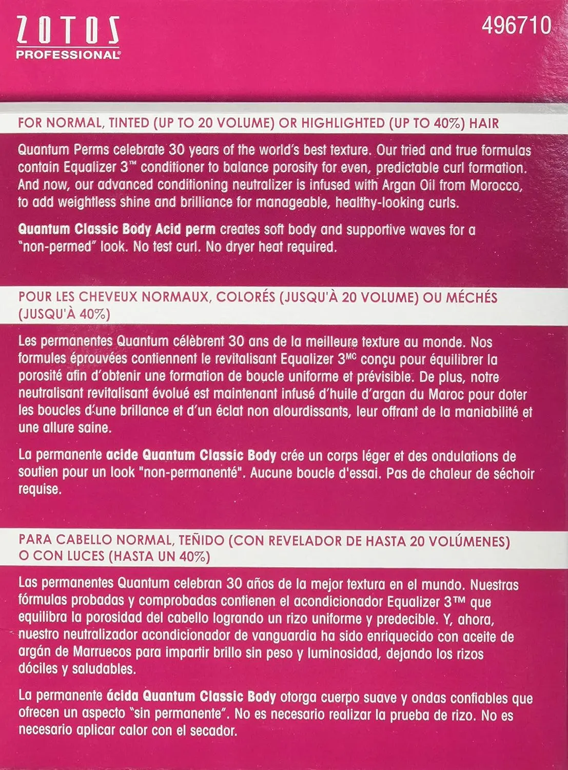 Achieve smooth, manageable, healthy-looking curls with Zotos Quantum Classic Body Perm. Its patented equalizer 3 conditioner balances porosity for even, predictable curl formation.